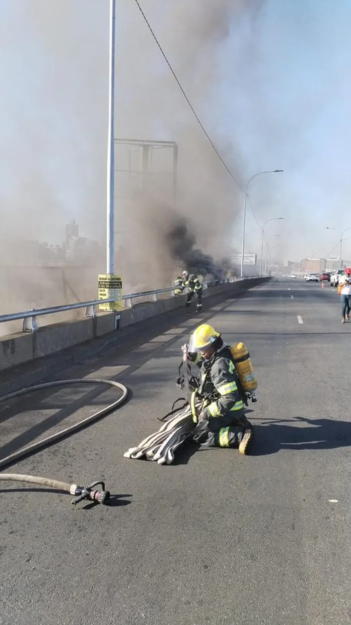 ONJINIYELA, abezimo eziphuthumayo nabophiko lokagesi kuMasipala waseGoli bahlola umonakalo ngaphansi kwebhuloho elikuM1 lapho kuqubuke khona ilangabi kusha amakhebuli ngoLwesithathu emini.