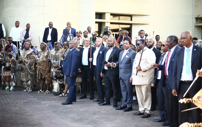 ISILO uMisuzulu kaZwelithini, uNdunankulu kaZulu uMfu Thulasizwe Buthelezi namakhosi bebehlangene oLundi ukubhunga udaba lweNgonyama Trust Isithombe: SIBONELO NGCOBO/Independent Media