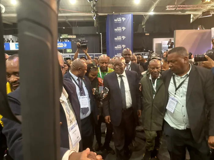 Umholi weMK uJacob Zuma etheleka esikhungweni se-IEC eMidrand Isithombe: Sihle Mlambo/Independent Media