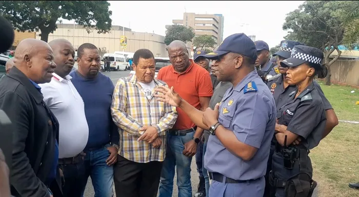 BABONGE uKhomishana wamaPhoyisa uLieutenant General Nhlanhla Mkhwanazi emva kokuhlanganisa izikhulu zamatekisi KwaZulu-Natal emhlanganweni obubanjelwe eDurban Central Police Station, eThekwini.