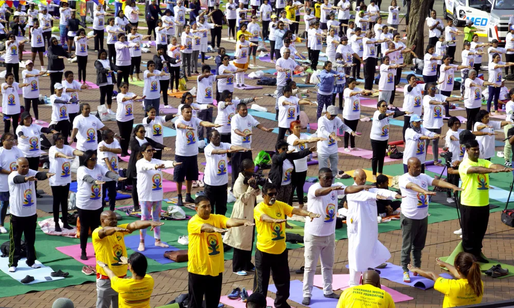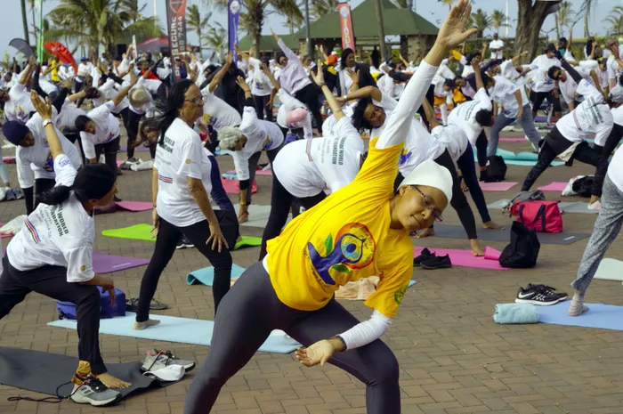 ABANYE babantu ebebehlangene eThekwini begubha i-International Yoga Day ebihlelwe iSivananda World Peace Foundation Photographer: Khaya Ngwenya