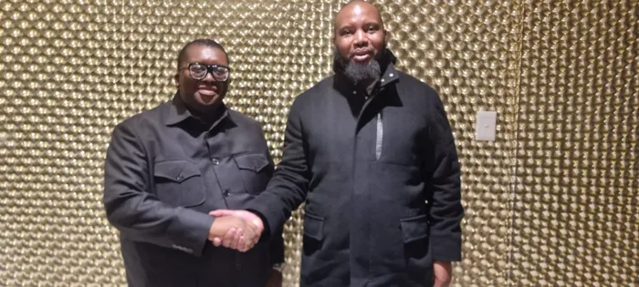 UNDUNANKULU kaZulu, uMfu Thulasizwe Buthelezi noSihlalo we-ANC KwaZulu-Natal, uMnuz Siboniso Duma, emva komhlangano wabo Isithombe: Sithunyelwe