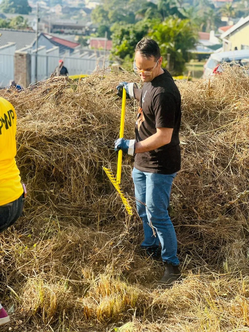 UNGQONGQOSHE wemiSebenzi kaHulumeni KwaZulu-Natal, uMnuz Martin Meyer ubeke eceleni amasudi wasiza umphakathi ukususa isikhotha eReservoir Hills Isithombe: SITHUNYELWE