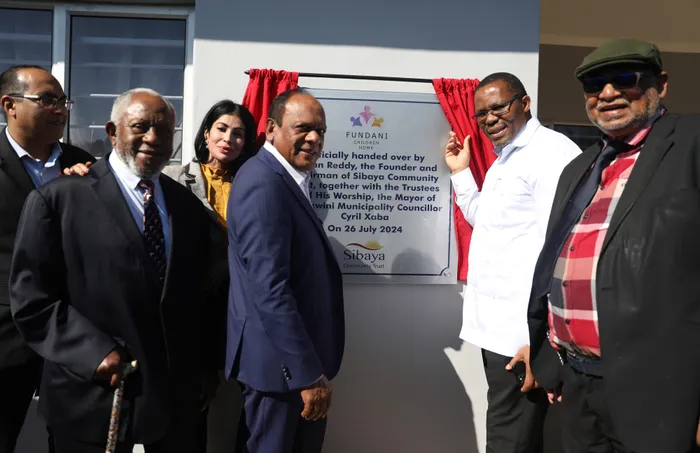 BEKUYINJABULO yodwa ngesikhathi kuvulwa iFundani Children’s Home eyakhiwe nguMnuz Vivan Reddy, lapha uthathwe nomkakhe uSorisha, owayengumengameli wamaJaji KwaZulu-Natal, iJaji uVuka Tshabalala, iMeya yeTheku uMnuz Cyril Xaba nePhini likaNgqongqoshe wezokuThuthukiswa koMphakathi, uMnuz Ganief Hendricks Isithombe: Nqobile Mbonambi/Independent Media