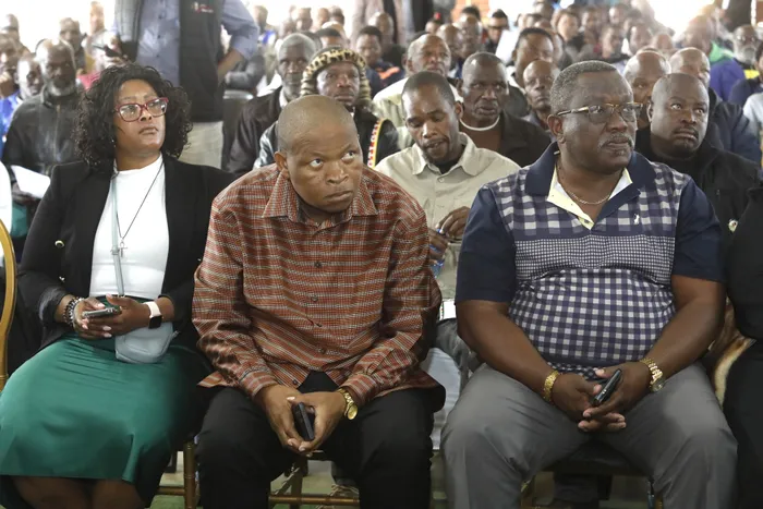 IMEYA kuMasipala waseNkandla, uMnuz Mbhekiseni Biyela (ophakathi), ngesikhathi kunembizo yokuvala inyanga yamadoda eNkandla Isithombe: Sithunyelwe