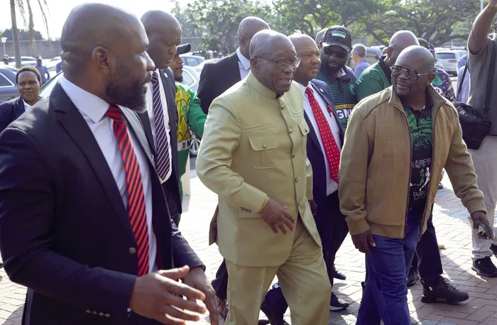 UMHOLI we-MK, uMnuz Jacob Zuma, obeseNkantolo eNkulu eThekwini, ecaleni lombango wegama nophawu Isithombe: Khaya Ngwenya / Independent Media