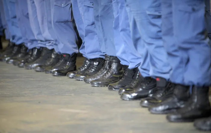 Amaphoyisa adubule kwafa umsolwa okuthiwa ubewadubula eSikhaleni. Abanye abasolwa bagcwele amathafa Isithombe: Armand Hough