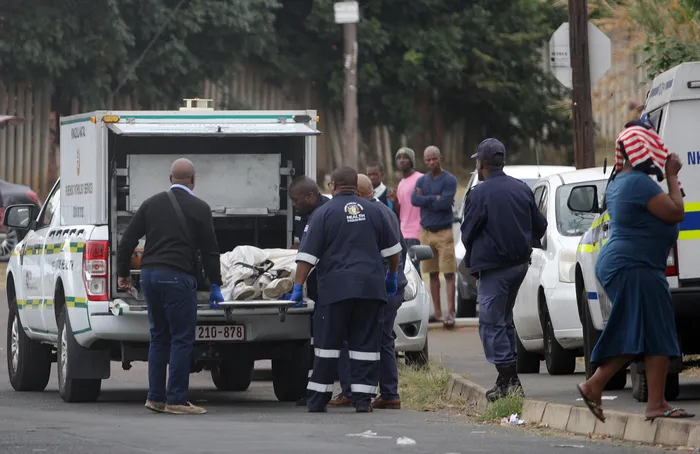 UBALISA ngobunzima obhekene nabo umndeni wakwaNyathi, eSonyongwane, eMzimkhulu ngemuva kokushona kukababa wekhaya ngesikhathi ebona isidumbu sendodana ebizongcwatshwa. isithombe: Bongani Mbatha / African News Agency (ANA)