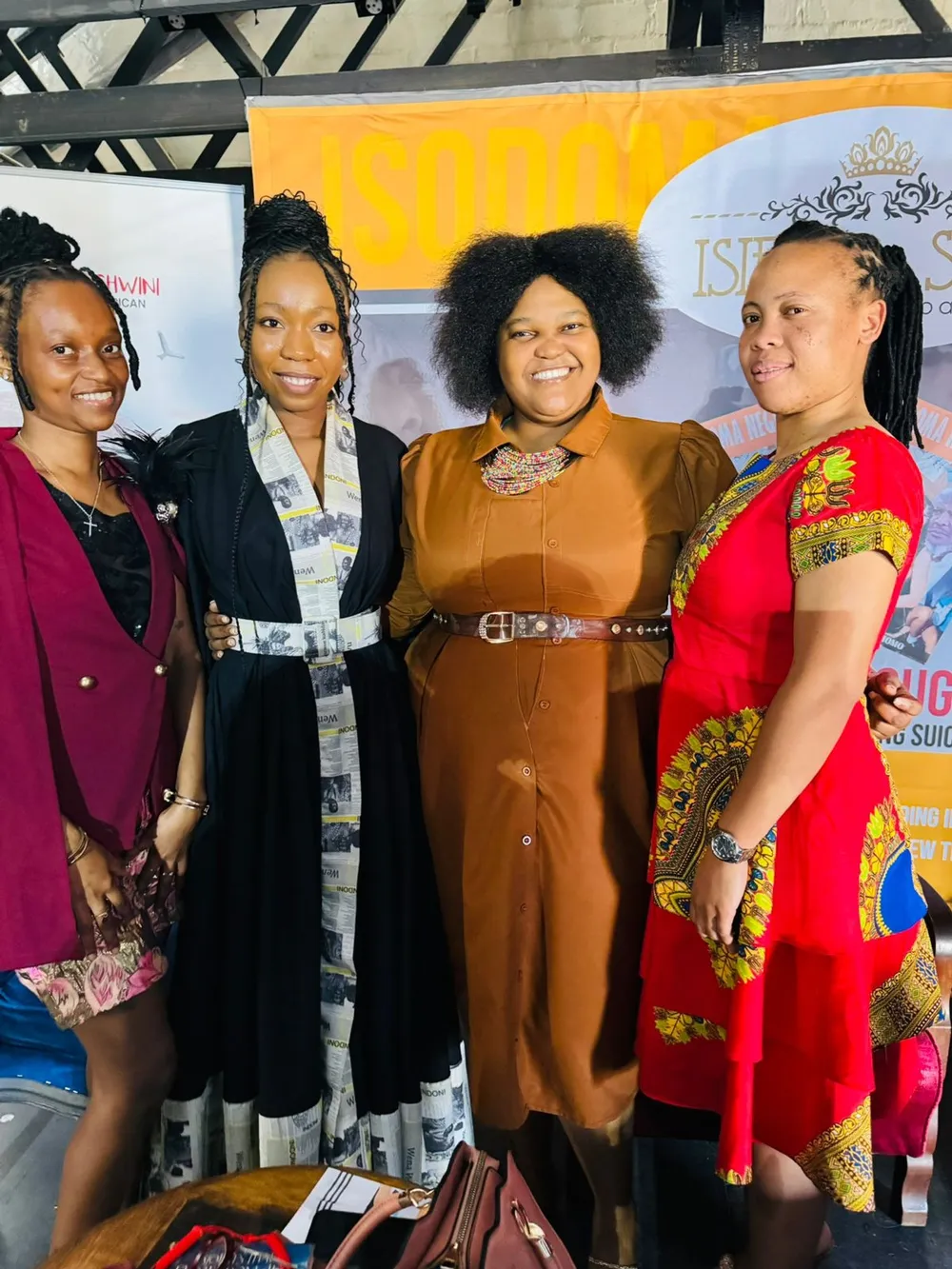 KUSUKELA kwesokunxele, umphathi wohlelo uLumka Fabulous, imbongi uMbali Malimela nababhali bezincwadi oZikhona Myaka no-Amanda Khomo Isithombe: SITHUNYELWE