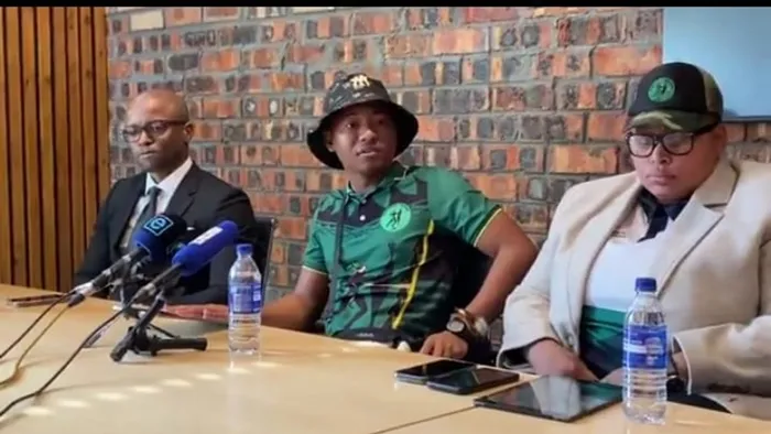 UTHAMSANQA Khuzwayo namanye amalungu eMK Party okwahoxiswa ubulungu bawo yileli qembu, bebambe isithangami nabezindaba eKapa. Isithombe: X