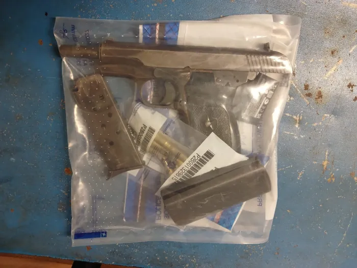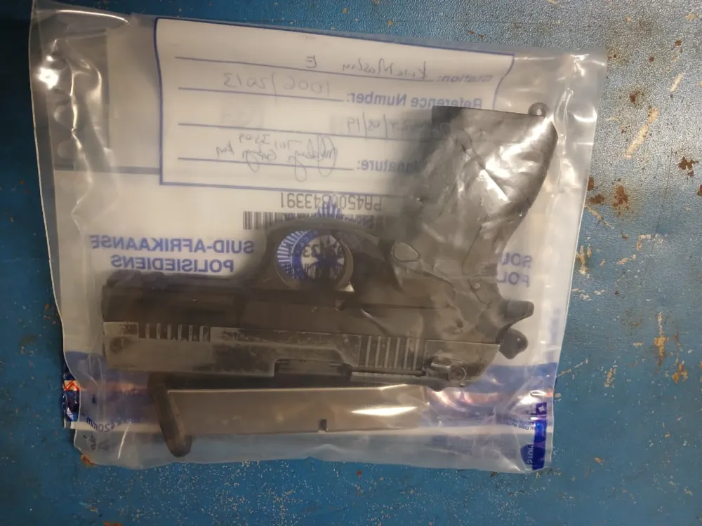 Kubikwa ukuthi utholwe nesibhamu i-9mm ecishwe izinombolo nezinhlamvu. La maphoyisa kubikwa ukuthi aqhubekile nokuthungatha abasolwa, omunye waboshwa ngasemgwaqweni eSiyanda nesibhamu esingekho emthethweni.