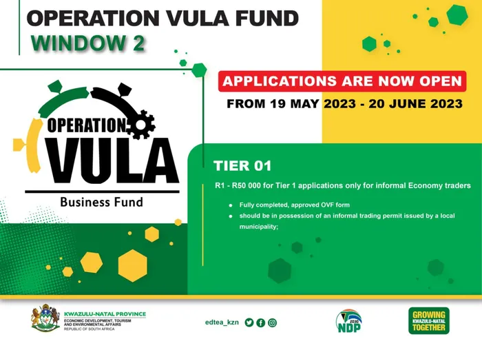 Ngonyaka odlule uhulumeni wayebeke eceleni uR191 million ukuxhasa osomabhizinisi ku-tier 1 we-Operation Vula. Kuxhaswa amabhizinisi adinga uxhaso luka-R50 000 nangaphansi. Uxhaso luyakhula ngokwezigaba kusukela ku-tier 1 kuya ku-tier 3.