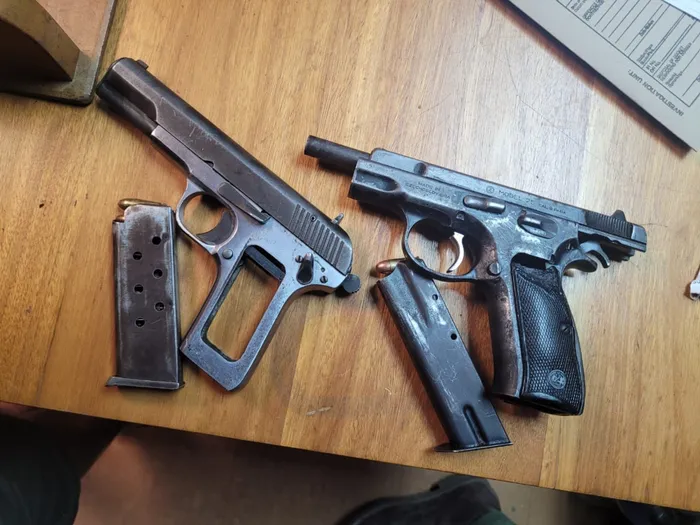 “Abasolwa abaneminyaka ephakathi kuka-19 no-29 ubudala, batholwe nezibhamu ezimbili, esisodwa sicishwe izinombolo zaso namamagazini amabili agcwele izinhlamvu.”