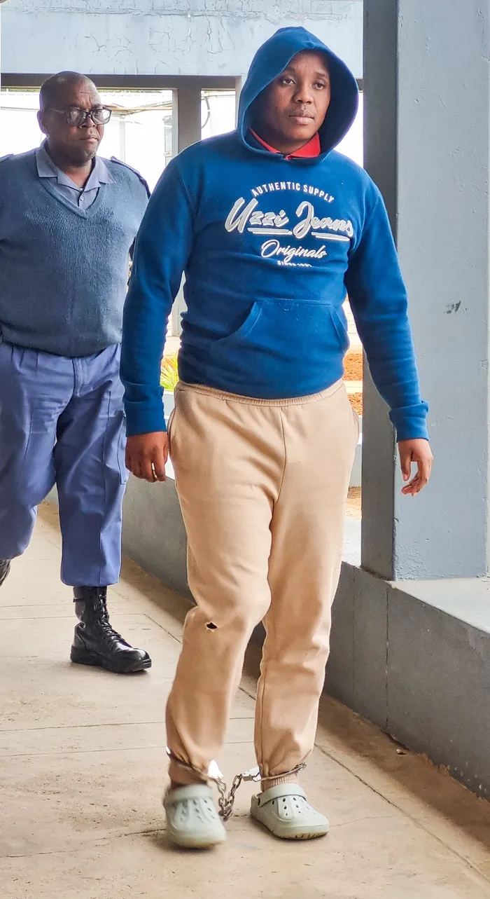 UBEFASWE ngozankosi emilenzeni eqhutshwa iphoyisa uMnuz Khethani Khuboni efika enkantolo ebhekene namacala angu-18 okudlwengula eMlaza Isithombe: SIBONELO NGCOBO/IDEPENDENT MEDIA