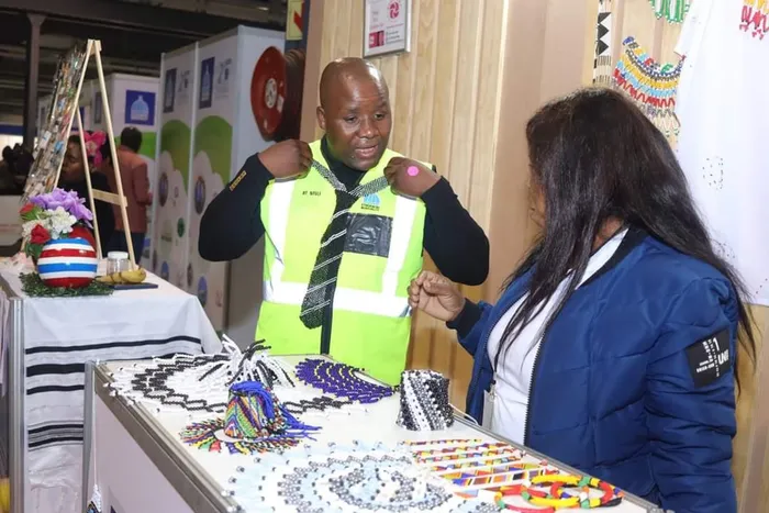 USIHLALO wekomiti lezokuThuthukiswa koMnotho kuMasipala weTheku, uMnuz Thembo Ntuli, wathathwa lapha elinganisa uthayi wobuhlalu kwelinye lamabhizinisi ayekhangisa kwi-South Regional Durban Business Fair Isithombe: Sithunyelwe