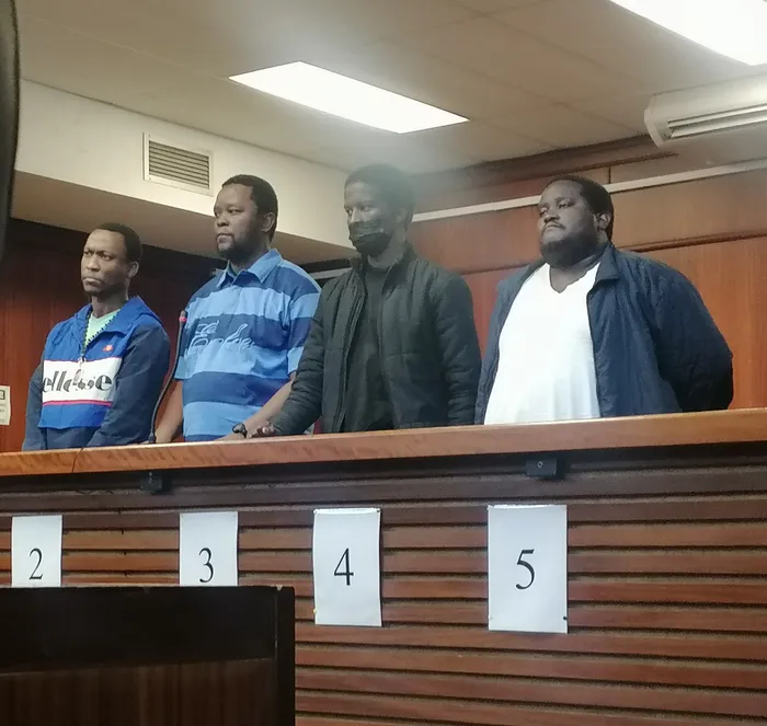 BAGWETSHWE odilikajele o-Andile Nhleko (32), Mncedisi Mzobe (32) noLindani Ndlovu (26), kwathi uMalusi Mthembu wagixatshezwa ngewu-12 ngokubulala u-Andile ‘Bobo’ Mbuthu eHambanathi, oThongathi, ngo-2020 Isithombe: Simphiwe Ngubane
