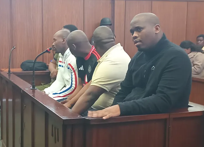 ABALISA abahlanu abasolwa ekufeni komrepha u-AKA, besenkantolo yeMantshi eThekwini, ngoLwesihlanu Isithombe: SIMANGALISO NTSHANGASE