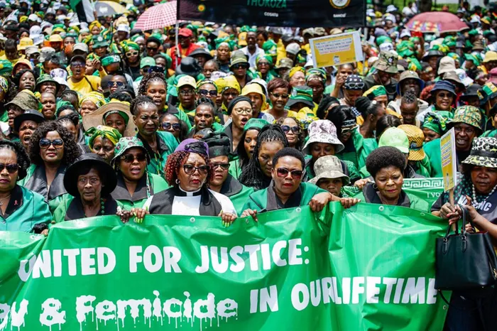 IMASHI ebihlanganisa izinhlaka ezehlukene ebihlelwe wuphiko lwentsha lwabesifazane be-ANC abamashele ezindlini zoMbuso ePitoli, bekhala ngesihlava sokuhlukunyezwa kwabesifazane Isithombe:X/FIKILE MBALULA