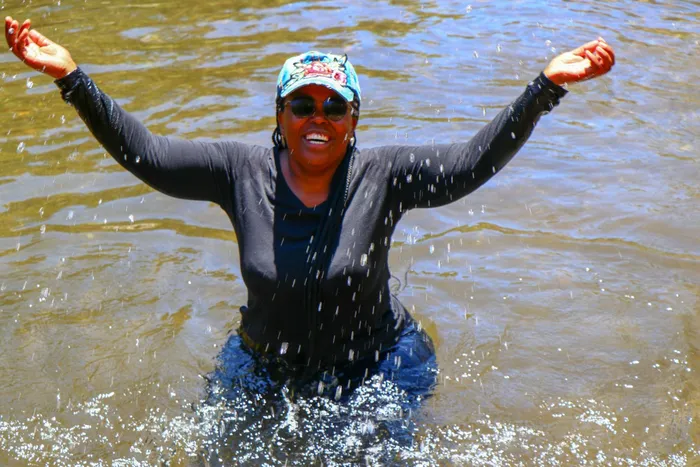 UMSUNGULI weGlamping Adventure uNksz Gugu Sithole, ejabulela ukuba semanzini kwenye yezimpophoma zaseRoyal Natal, eDrakensberg Isithombe: SITHUNYELWE