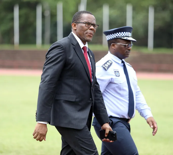 IMEYA yeTheku uMnuz Cyril Xaba noKhomishana wamaPhoyisa eTheku uMnuz Sibonelo Mchunu ngesikhathi kwethulwa amaphoyisa amasha azoqinisa ezokuphepha njengoba sekuqale isikhathi samaholidi okuphela konyaka Isithombe: SITHUNYELWE