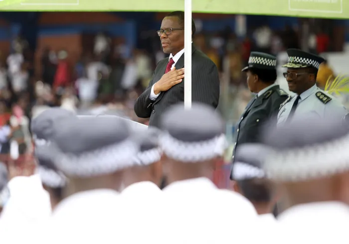 IMEYA yeTheku uMnuz Cyril Xaba nobuholi bamaphoyisa kamasipala okubalwa noKhomishana Sibonelo Mchunu ngenkathi kwethulwa amaphoyisa amasha ekuqaleni kwesonto Isithombe: SITHUNYELWE