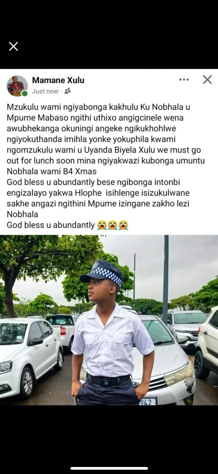 Naye ubefake isithombe sesihlobo sakhe esiyishaye yaphelela eyombutho wamaphoyisa kaMasipala weTheku, wase ebonga unobhala.