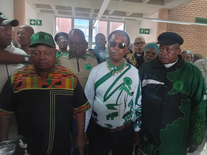 ILUNGU lethimba elihola i-MK KwaZulu-Natal, uMnuz Sibusiso Radebe, umholi wenhlangano esiShayamthetho saKwaZulu-Natal, Inkosi Phathisizwe Chiliza, noBishop Sandile Ndlela, eNkantolo yeMantshi eMgungundlovu, lapho bekuvele khona isikhulu se-IEC esisolwa ngokwephula imigomo yokhetho Isithombe: SABELO NSELE