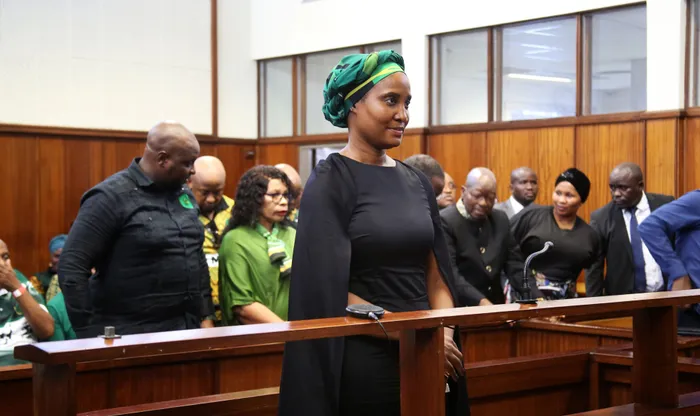 UDUDUZILE Zuma ngesikhathi evele phambi kweNkantolo yeMantshi yaseThekwini, izolo Isithombe: TUMI Pukkies