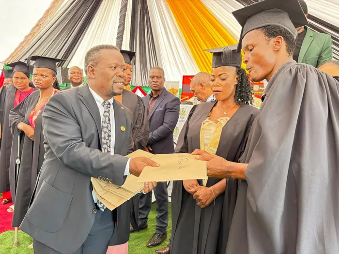 IMEYA yasoPhongolo uMnuz Bheki Thwala, idlulisela izitifiketi kwabaphila nokhukhubazeka abaphothule izifundo zamakhono Isithombe : SITHUNYELWE