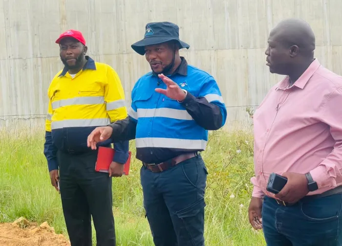 KUSUKELA kwesobunxele, uMnuz Thulani Dube oyimenenja yoMkhandlu iMajuba District, iBamba leMeya uMnuz Thembelihle Mthembu noMnuz Sakhile Mkhwanazi oyimenenja yeHhovisi likaMeya Isithombe: SITHUNYELWE