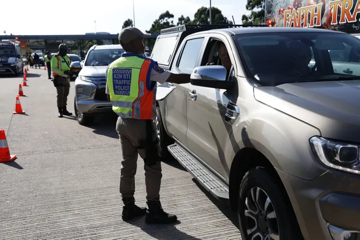 AMAPHOYISA omgwaqo abematasa izolo ehlola izimoto nezincwadi zokushayela eMariannhill Toll Plaza njengoba abavakashi bese bephindela emuva