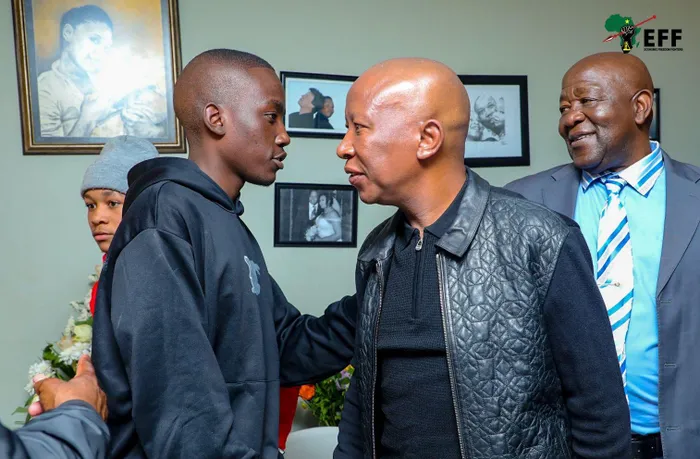 UMHOLI we-EFF, uMnuz Julius Malema, izolo, uhambele umndeni womlingisi oshone ngeledlule uPresley Chweneyagae, wodumo lwefilimu i-Tsotsi