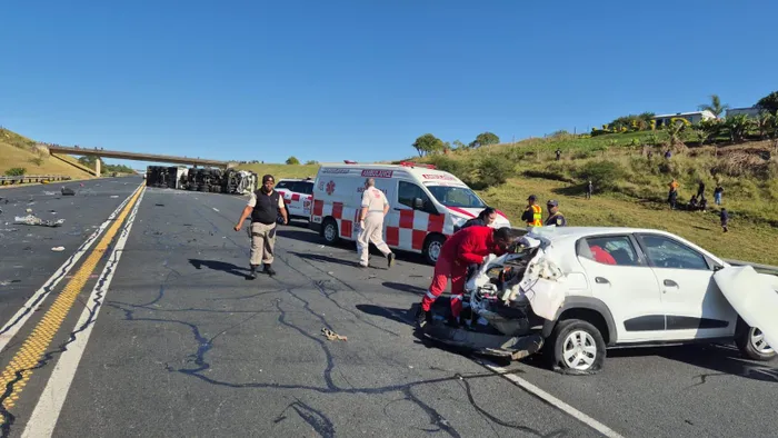 NgoMgqibelo ekuseni, i-IPSS Medical Rescue kanye noMnyango wezeMlilo waseMandeni babizelwe engozini ephakathi kweloli nemoto encane eyenzeke u-N2 eduze nomfula iMatigulu.