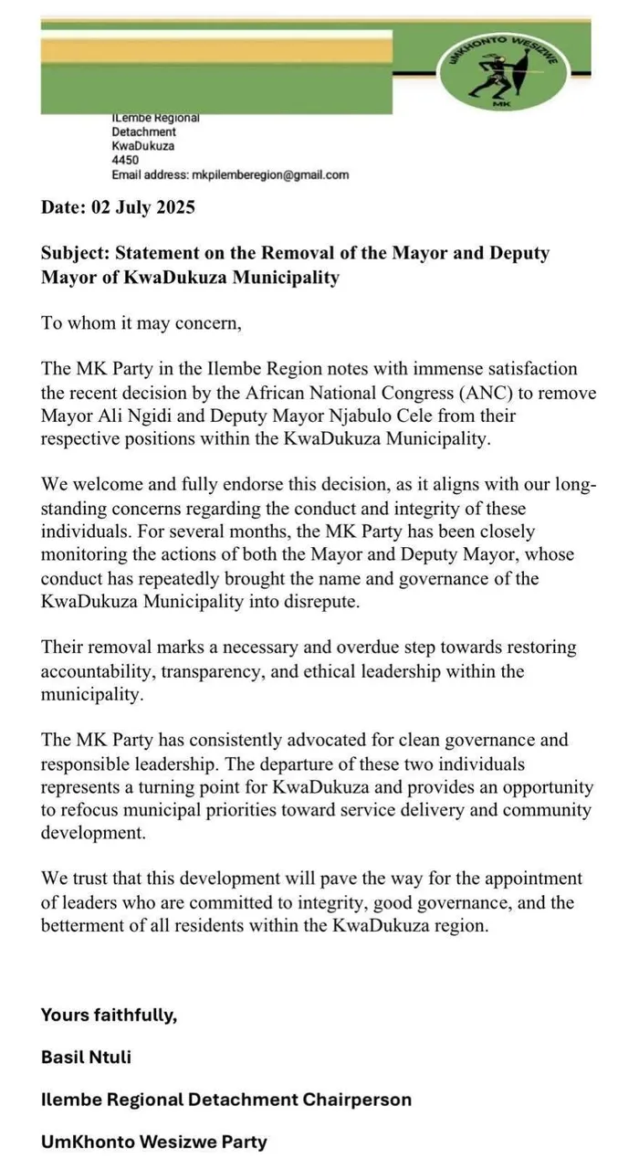 Nebala kuthiwa lishone elangoLwesithathu uMnuz Ali Ngidi nephini lakhe uMnuz Sicelinjabulo Cele basule ngokusemthethweni kulandela ingcindezi ye-African National Congress (ANC) esifundazweni.