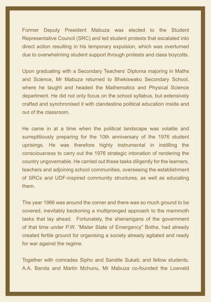Abaholi bezombusazwe, amalungu e-ANC Kanye nomphakathi waseMpumalanga bahlanganyele ndawonye nomndeni wakwaMabuza ukuvakelisa owayeyiphini likamengameli uMnuz David Mabuza.