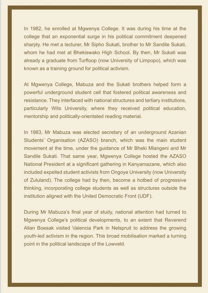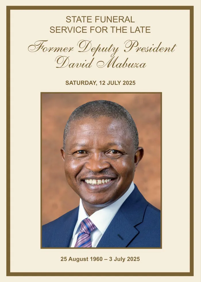 Umngcwabo ka Mabuza ububanjelwe eHoërskool Bergvlam, eMbombela, eMpumalanga. UMabuza oshonele esibhedlela saseGoli ngemuva kokugula isiikhashana ngomhla Ka 3 kwephezulu.