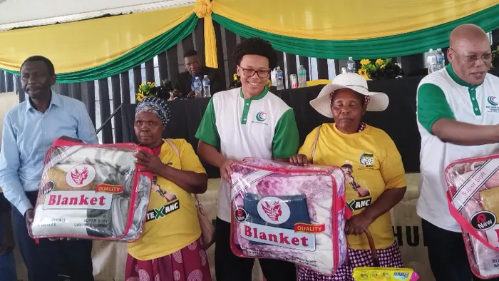 IMEYA yaseMkhanyakude, uMnuz Siphile Mdaka, ibongela abantu abadala abahlomule ngokudla nangezingubo zokulala ohlelweni obelwenziwe umxhumanisi wesigungu se-ANC sesikhashana KwaZulu-Natal, uMnuz Mike Mabuyakhulu