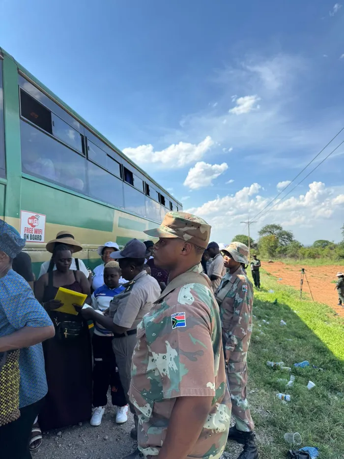"Kumatasa kakhulu lapha, amabhasi agcwele abantu abafuna ukungena kuleli afika kanye kanye. Izolo mhlawumbe kufike amabhasi angu-50. Ukufika kwamabhasi kanye kanye kwenza ukuthi kube nesiminyaminya ngoba kuthatha isikhathi ukuthi sikwazi ukuqinisekisa ukuthi bonke abantu abasemabhasini banamaphepha afanele abagunyaza ukuba babe kuleli. Ngaphandle kwamabhasi kuphinde kube nenqwaba yezimoto nazo ezilayishe abantu."