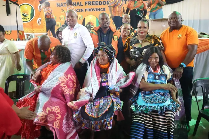 UBUHOLI obuphezulu eqenjini iNFP buholwa yiPhini likaMengameli, uMnuz Milton Sokhela, uSihlalo waKwaZulu-Natal uNksz Mbali Shinga nabanye abaholi, bebonga umndeni womsunguli weqembu leNFP, uNkk Zanele kaMagwaza Msibi, ngokuba ingxenye yomcimbi wokumkhumbula oLundi