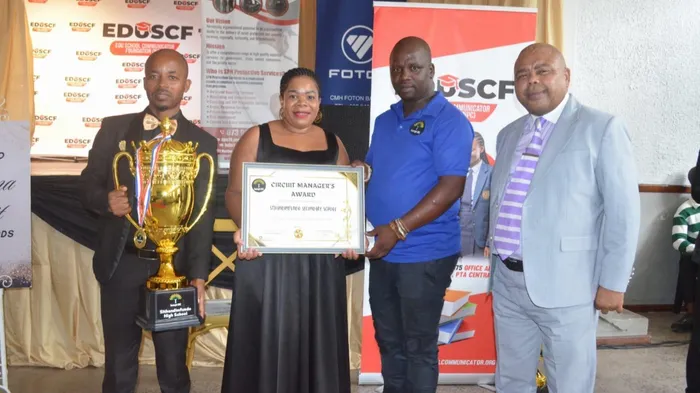 UMNUZ Sibusiso Mjwara wenhlangano iSesimiphi NPC enikeza othisha baseSithandimfundo Secondary imiklomelo ngokuphasa kahle. Kusuka kwesokunxele; nguMnuz Ndaba, Nkk Nene, Mjwara nomhloli omkhulu, uMnuz Sithembiso Lushozi
